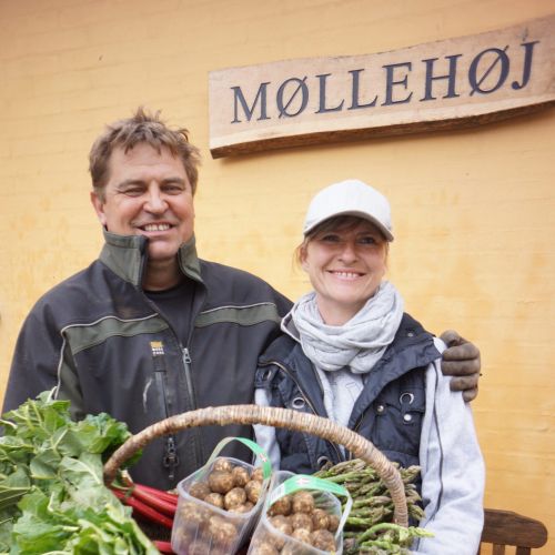 I udkanten af den lille bakkede by Søsum ligger Møllehøj. En stor gul firelænget gård omgivet af kartofler, jordbær, asparges, og æbler. På gårdspladsen er der fra morgen til aften et leben uden lige. For gårdbutikken med de helt friske råvarer får folk til at pendle lange afstande.